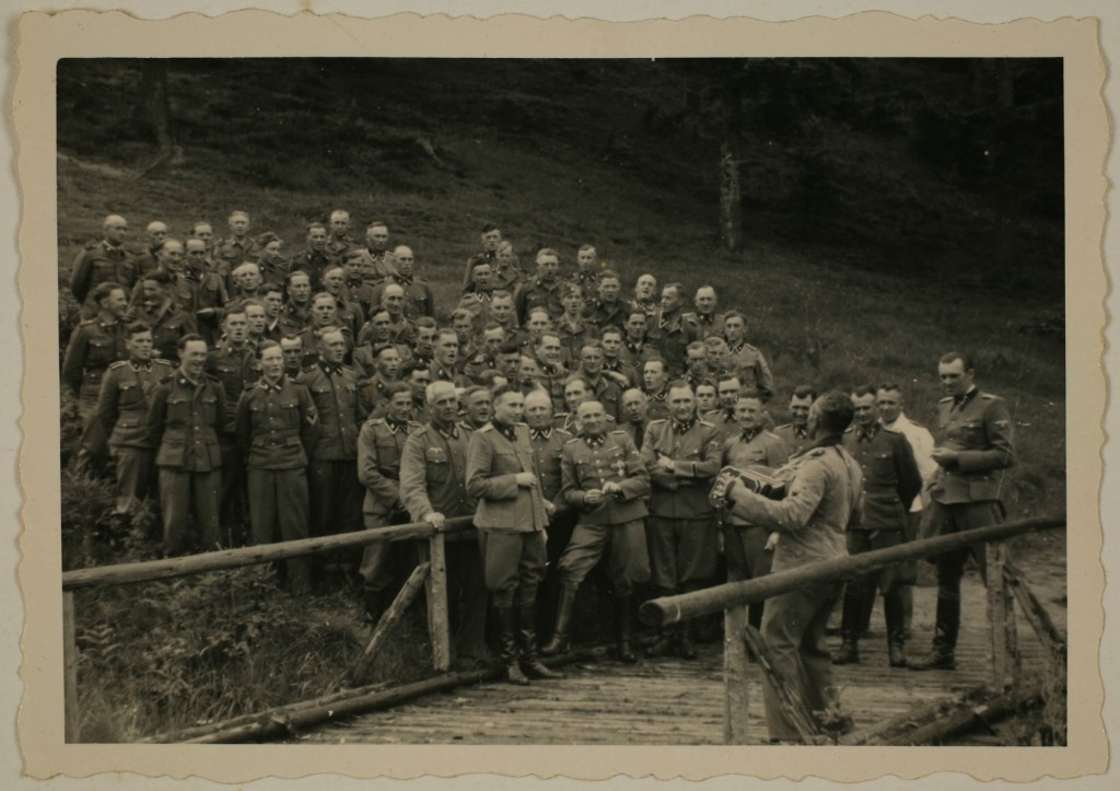 Perhaps the most extraordinary photograph depicts an accordionist leading a sing-along for approximately 70 SS men. In the front row of the group are Höcker, SS-Hauptscharführer Otto Moll (the supervisor of the gas chambers), Höss, Baer, Kramer, Franz Hössler (commander of the female prisoner compound at Birkenau), and Mengele. These are some of the only known photographs of some of these men, including Mengele, taken while they were stationed at Auschwitz.