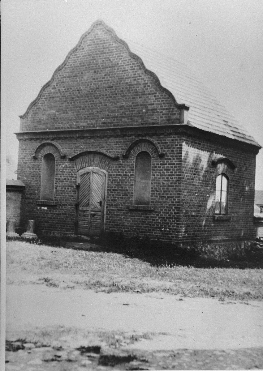 Postwar photograph of a building in the town of Dąbie where the possessions of Jews killed at the nearby Chełmno killing center were stored. Dąbie, Poland, June 1945.