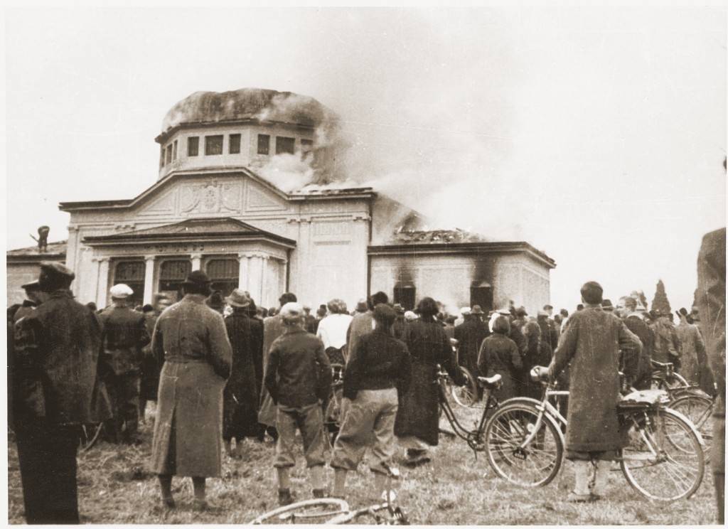 Les synagogues allemandes brûlèrent toute la nuit et le lendemain au vu et au su de tous. Souvent, l’incendie se transformait en spectacle public, attirant des foules de curieux. Et à certains endroits, les Juifs furent forcés à nettoyer les débris.