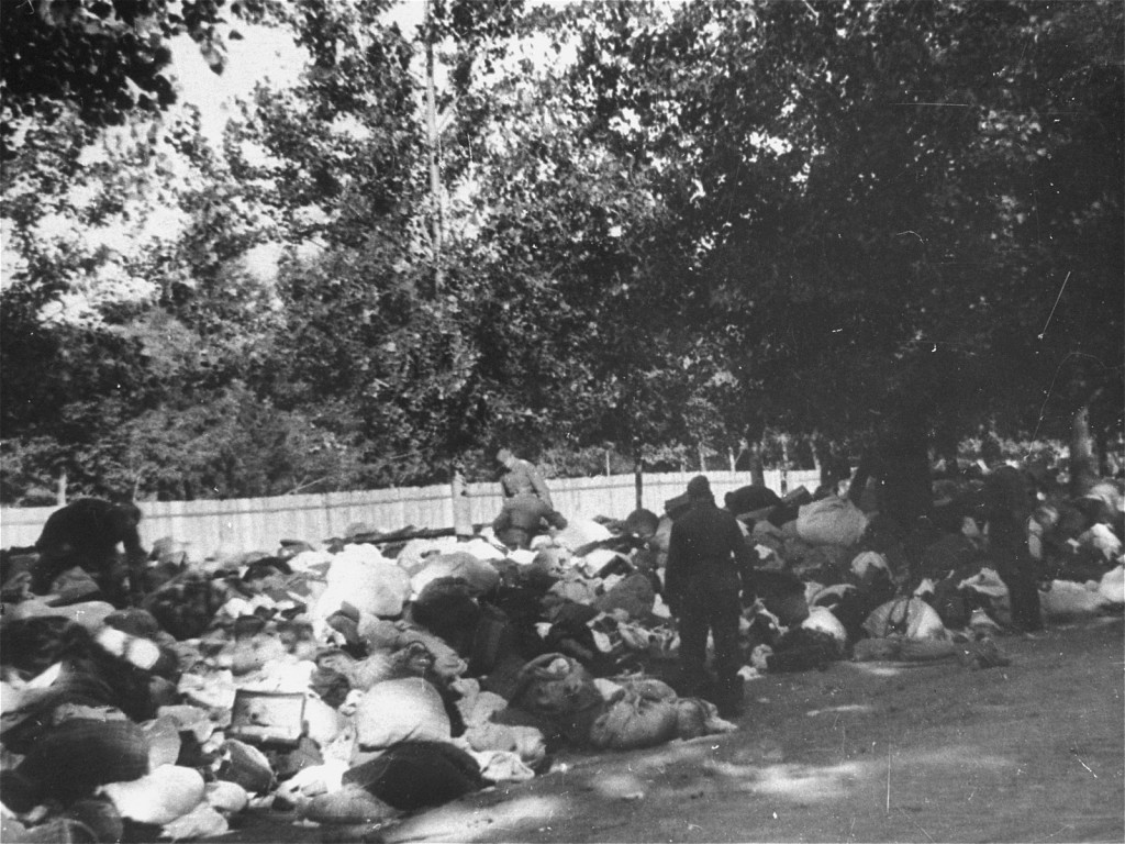 Солдаты одного из подразделений айнзатцгруппы "С" (оперативного карательного отряда "C") осматривают личные вещи евреев, расстрелянных в Бабьем Яру, овраге на окраине Киева. СССР, 29 сентября — 1 октября 1941 года.